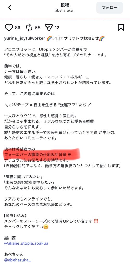 「阿部美佳(はるか)さんはマルチ(MLM)商法のビジネス会員なのでは?」